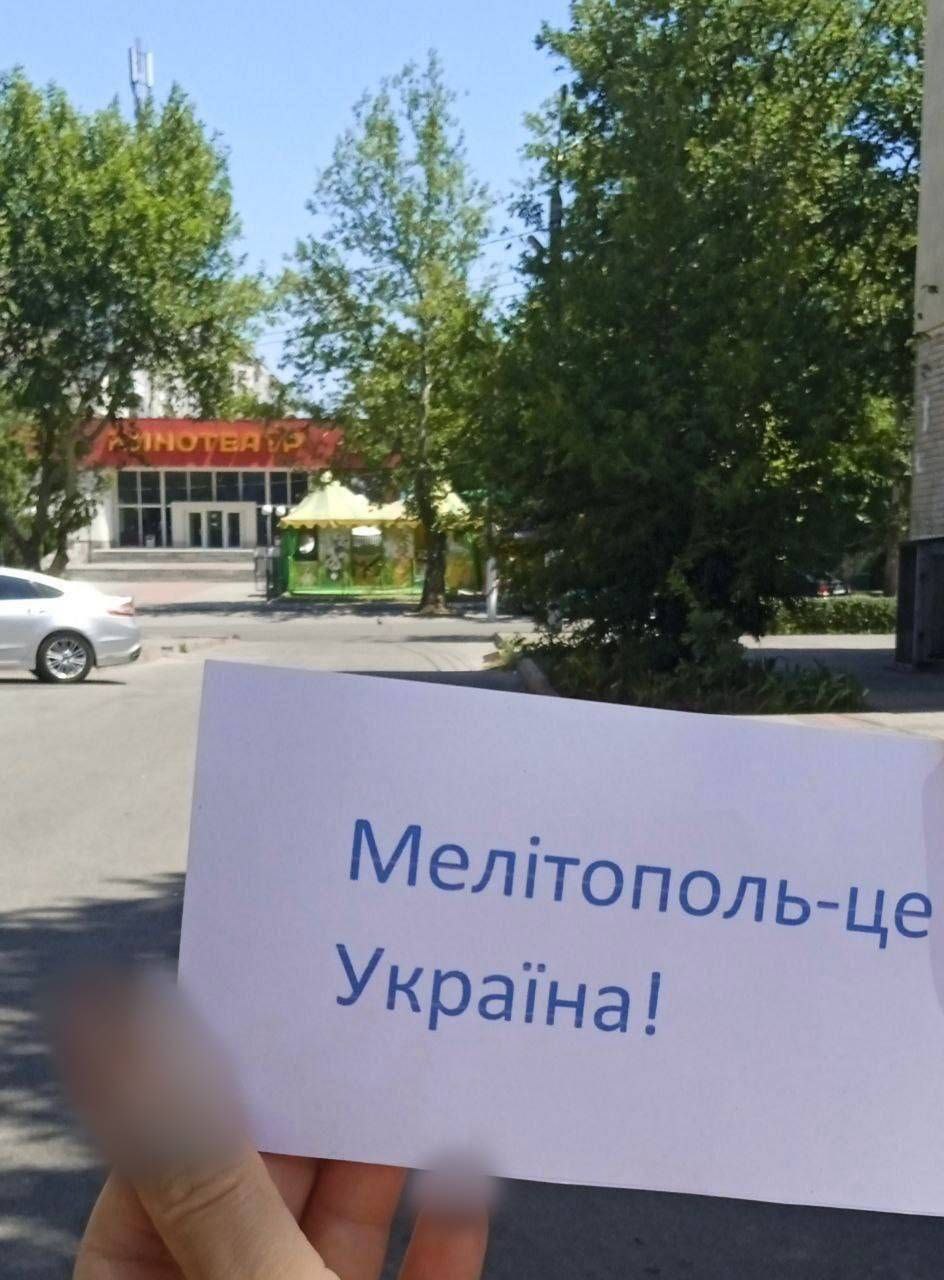 У тимчасово окупованих Мелітополі та Бердянську активісти руху «Жовта стрічка» поширили нові символи спротиву. Завдяки подібним акціям окупантам нагадують, що це українські міста. Про це повідомили в русі.
