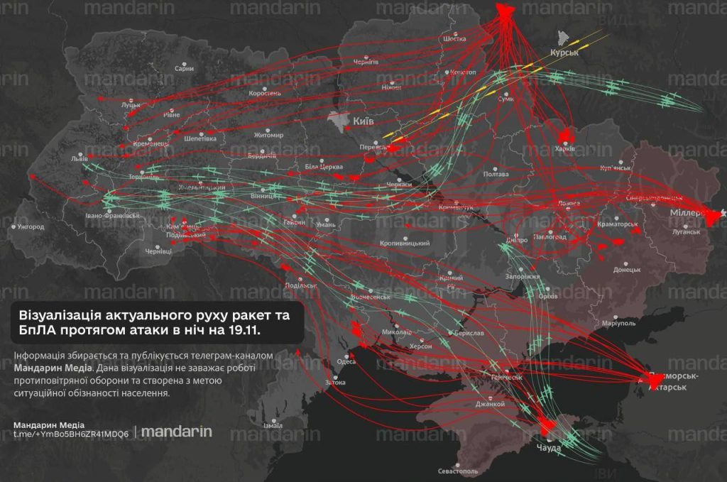 Окупанти застосували «Калібри», «Шахеди», ракети з Ту-95МС, «Кинджали». Під ударом опинилася енергетика та цивільна інфраструктура.