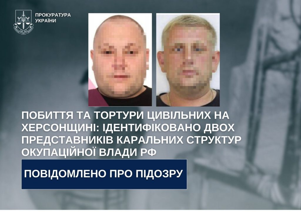 Прокуратура Херсонської області повідомила про підозру двом особам у жорстокому поводженні з цивільним населенням та інших порушеннях законів та звичаїв війни (ч. 2 ст. 28, ч. 1 ст. 438 КК України). Підозру повідомлено заочно.