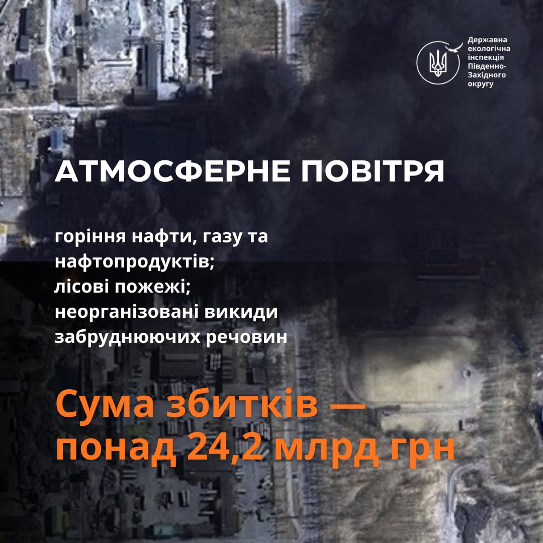 Найбільших втрат зазнав природно-заповідний фонд — майже 298 мільярдів гривень. Збитки земельним ресурсам перевищили 97 мільярдів гривень. Атмосферне повітря зазнало шкоди більш ніж на 24 мільярди гривень, а водні та морські ресурси — на понад 64 мільярди.