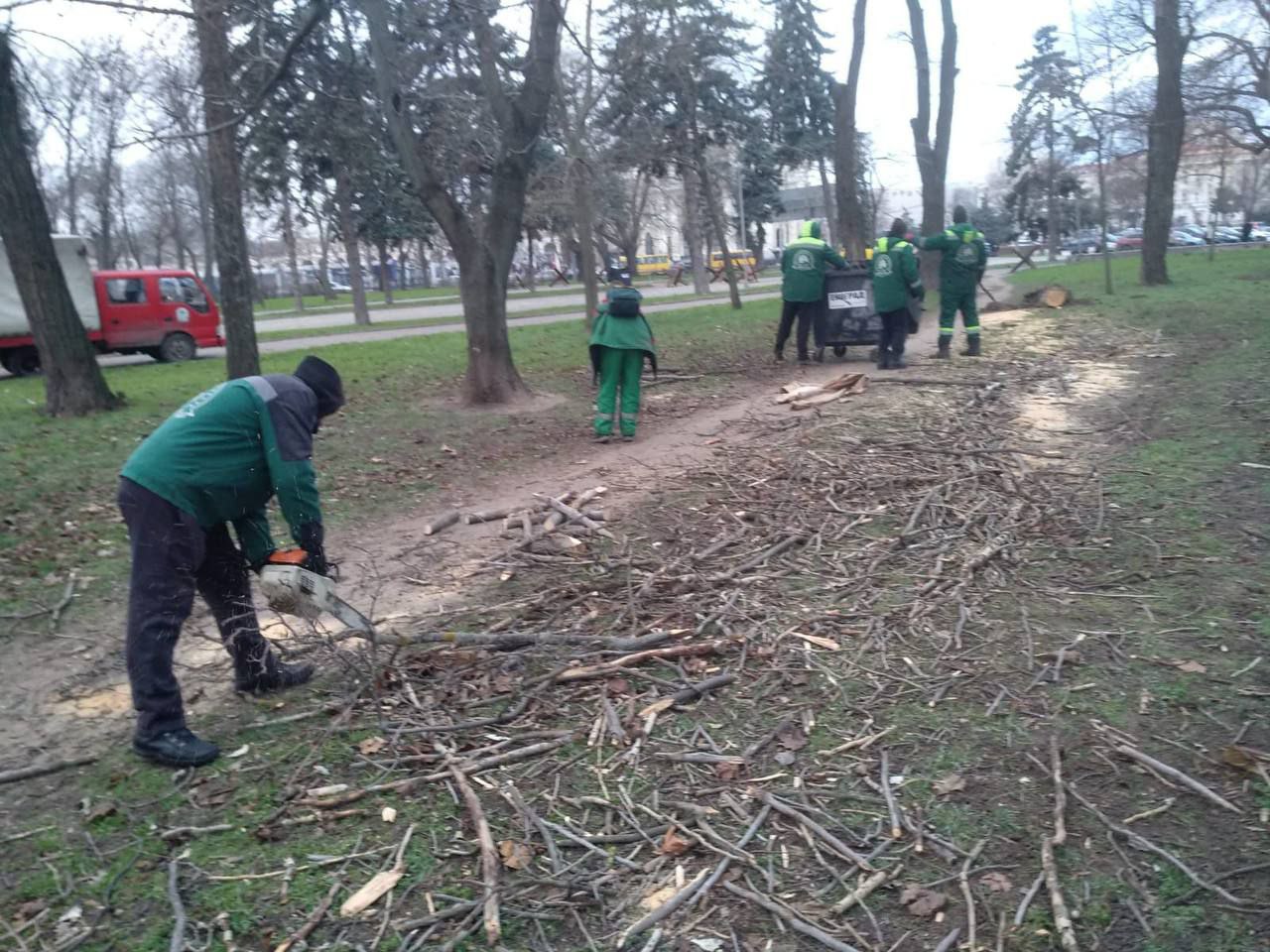 Комунальники вже прибрали більшість повалених стовбурів. Станом на ранок залишилося прибрати одне дерево.