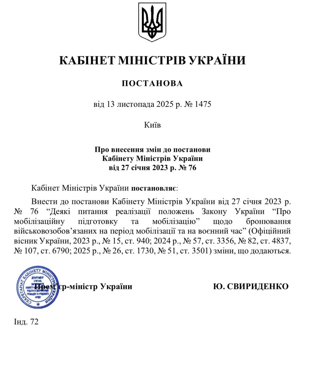 Кабмін вніс зміни у постанову №76 щодо бронювання працівників оборонних інноваційних підприємств.