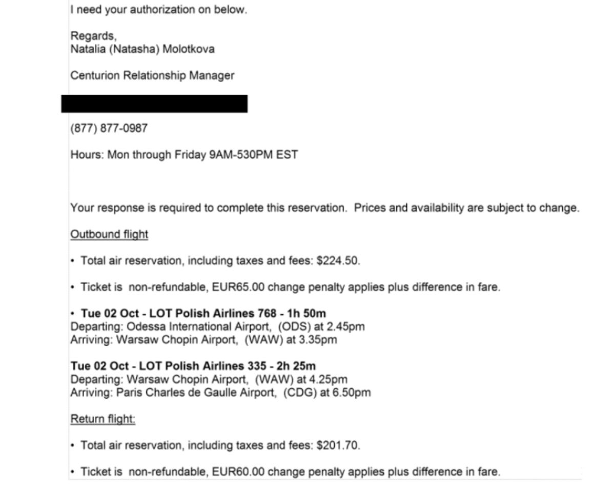 Одна з одеситок, Ольга, у 2018 році вирушила до Франції, а квитки для неї купували через менеджера компанії «Центуріон», Наталю Молоткову.