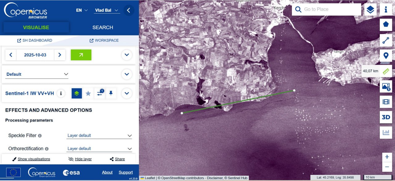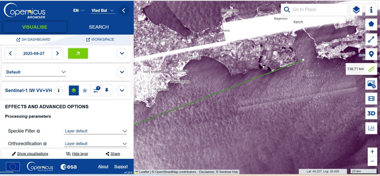 Крім того, за його словами, супутники фіксують прояви вторинного забруднення у відкритій акваторії навпроти Анапи та Бугазької коси, де періодично з’являються широкі дифузні плями — спливання мазуту з донних відкладень та під час штормів вони піднімаються у вигляді тонких плівкових «хмар» і розтягуються течіями. Північні та північно-східні вітри зсувають мазутні хвости у відкрите море вздовж кримського узбережжя.