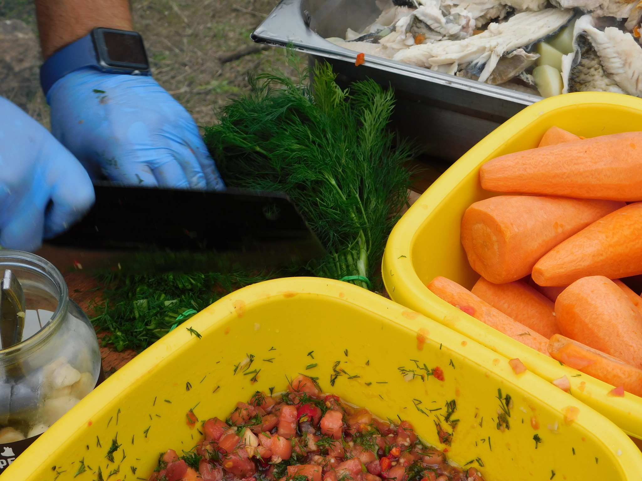 Як і минулого року, таємні інгредієнти юшки незмінні. Я готую юшку за рецептом моєї прабабусі. Це царська юшка з п’яти видів риби. А таємний інгредієнт – традиційний продукт українців будь якого регіону – сало, яке робить більш «м’яким і ніжним» смак риби. Багато овочів, зелені та палаюче поліно для аромату. Обов’язково пропоную спеціальний соус – саламур, який за смаком додається до готової юшки, – ділиться таємницями кухар Володимир.