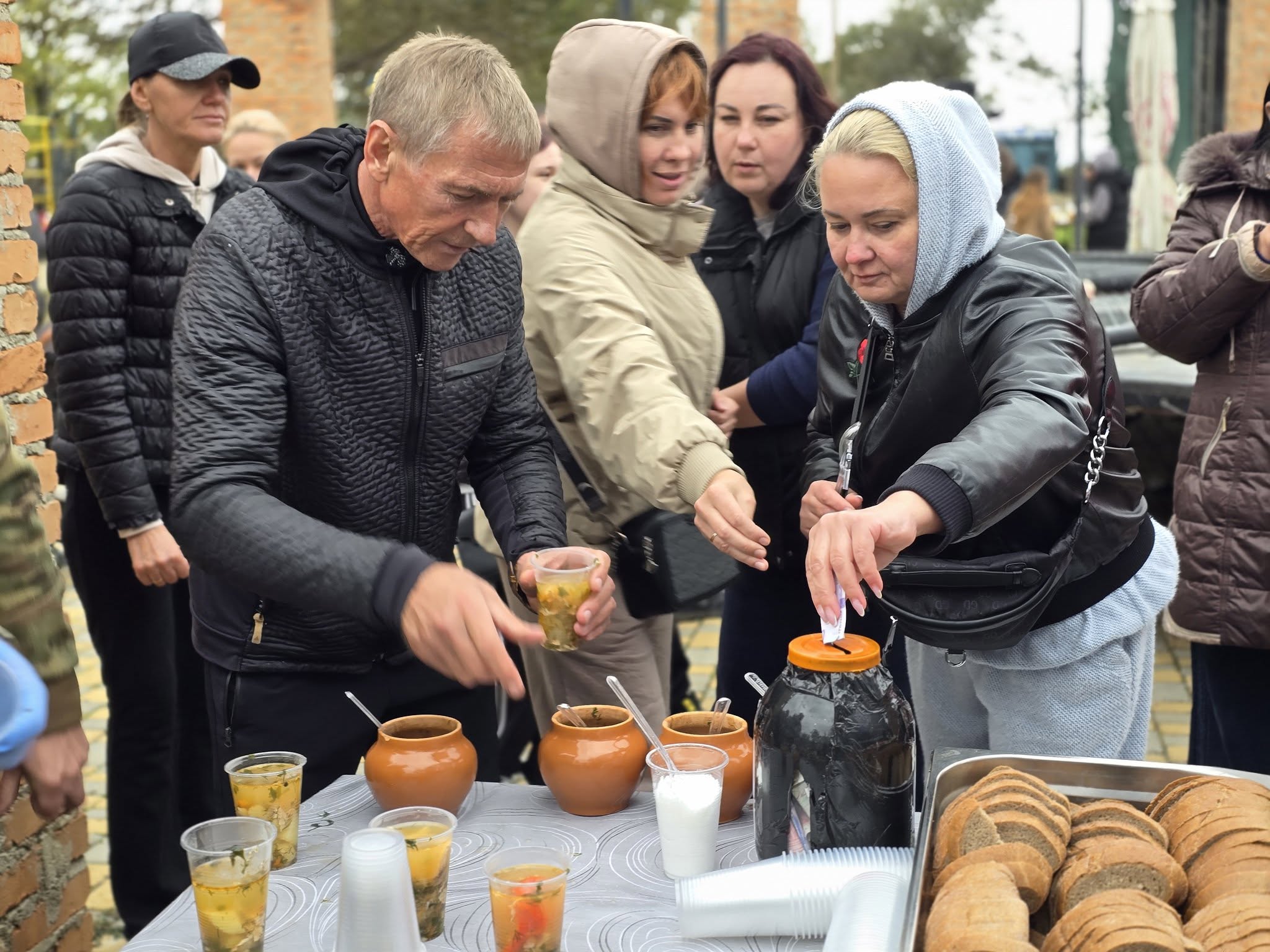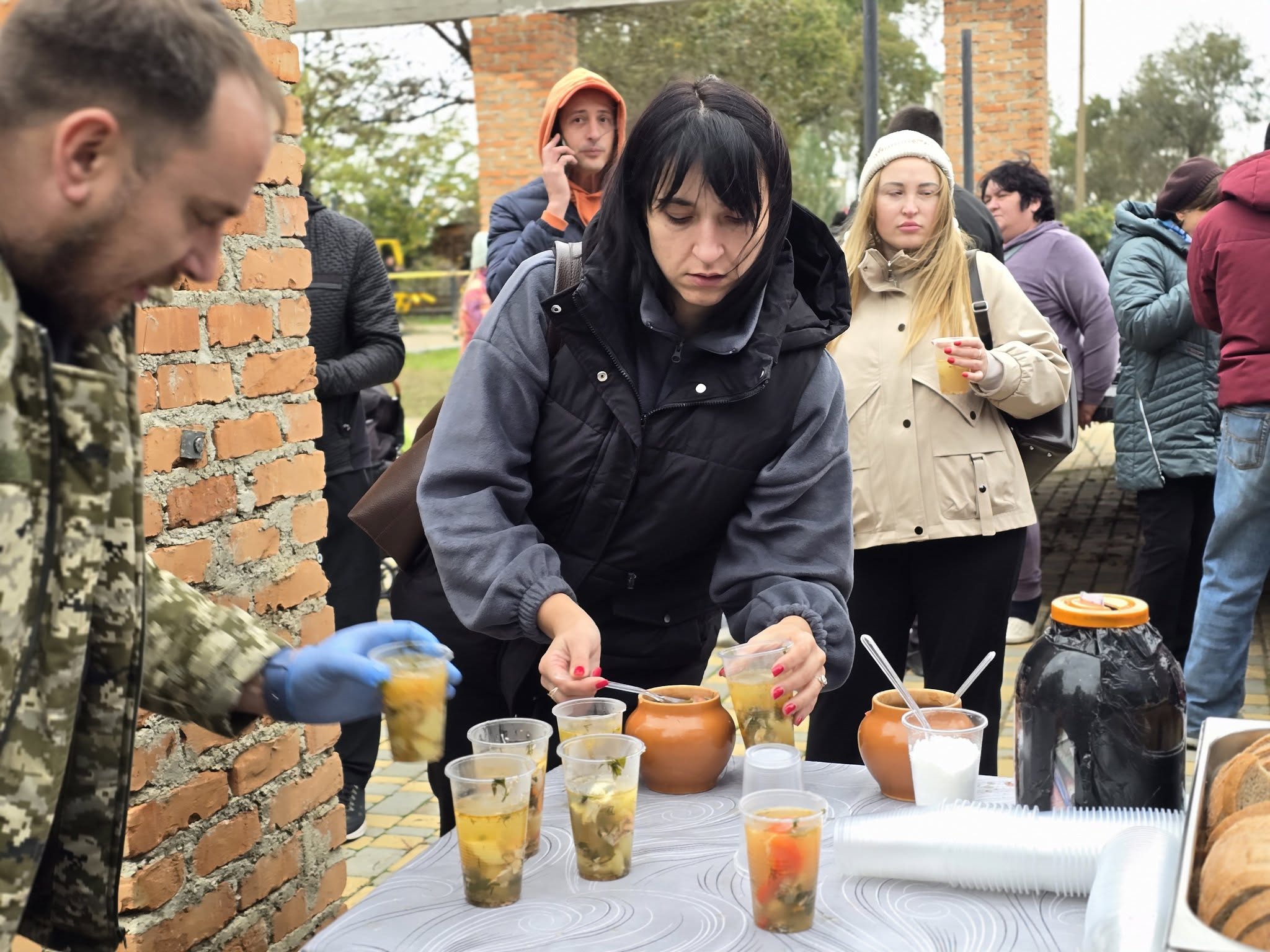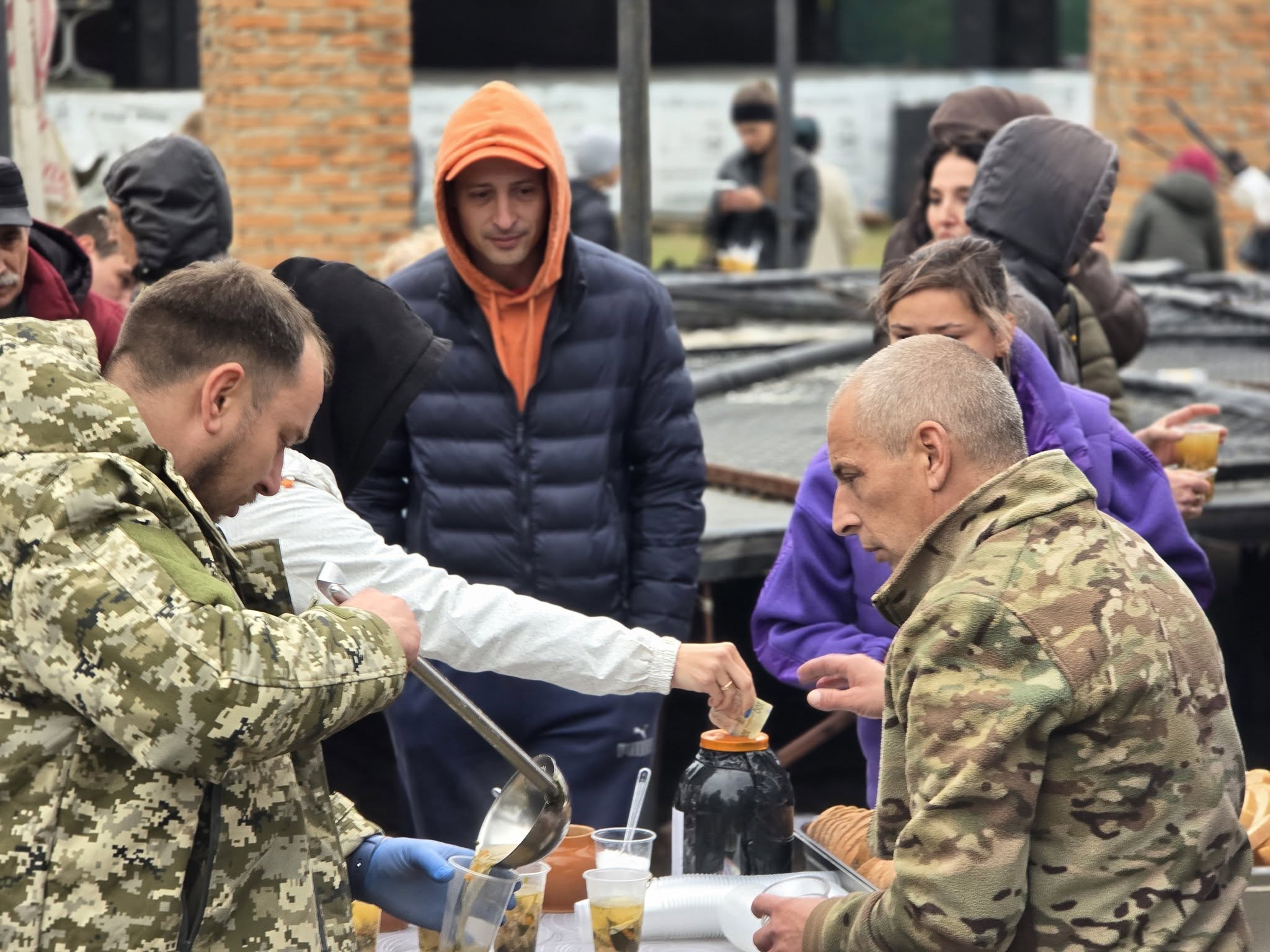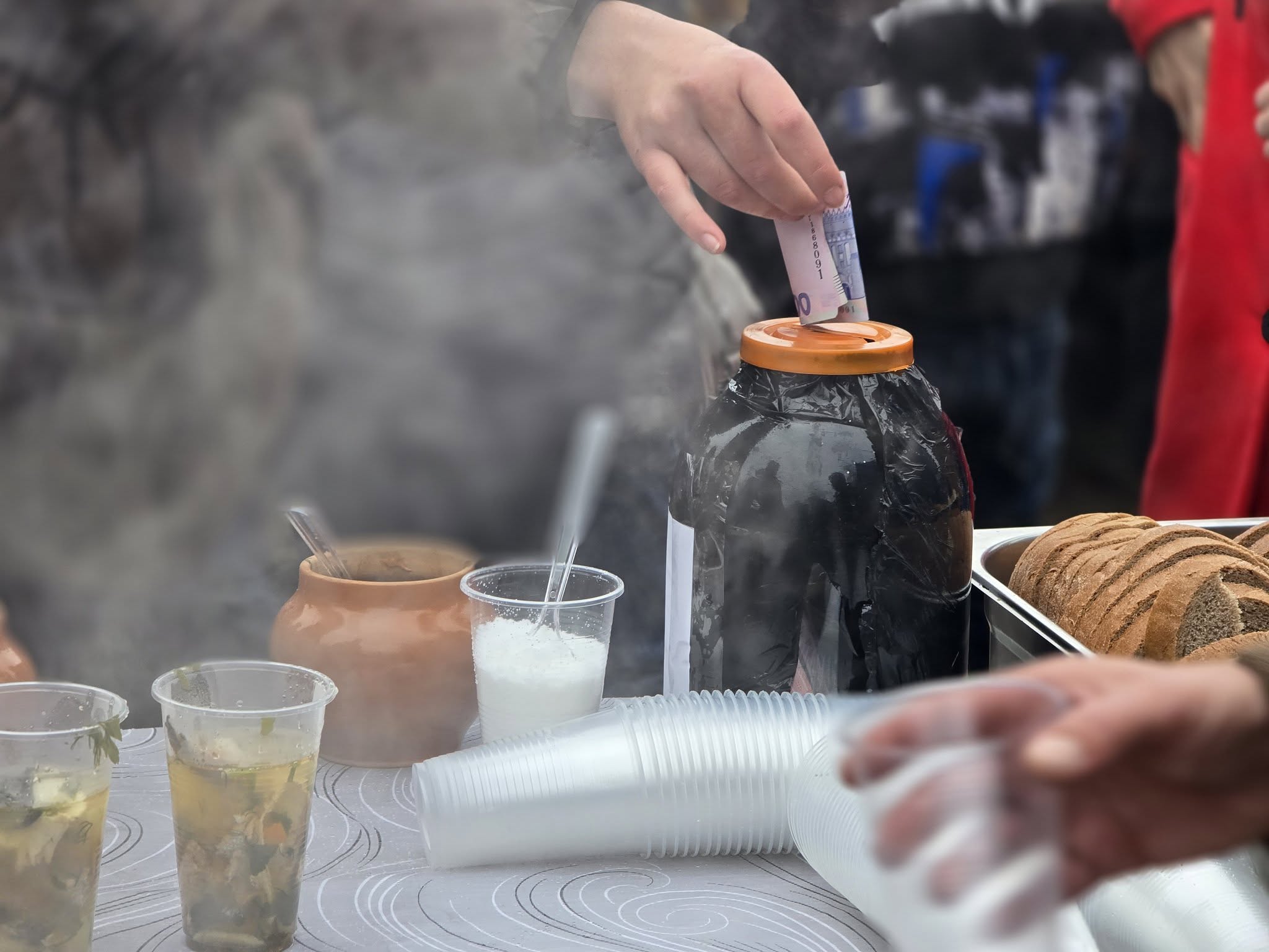 Коли страви закінчили готувати, перейшли до дегустації. Правила прості: сподобалася страва — кидай донат у банку команди. Чим смачніше вариво, тим щедріше внески.
